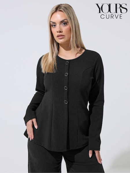 Yours Curve Black Limited Seam Detail Button Long Sleeve Top