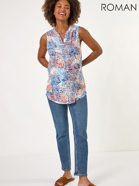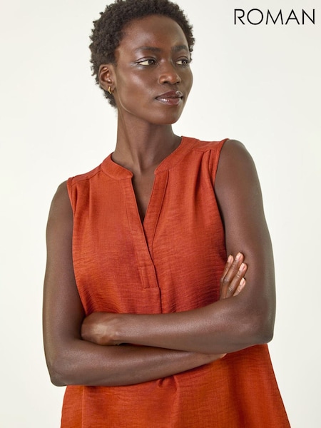 Roman Orange Leaf Burnout Print Vest Top