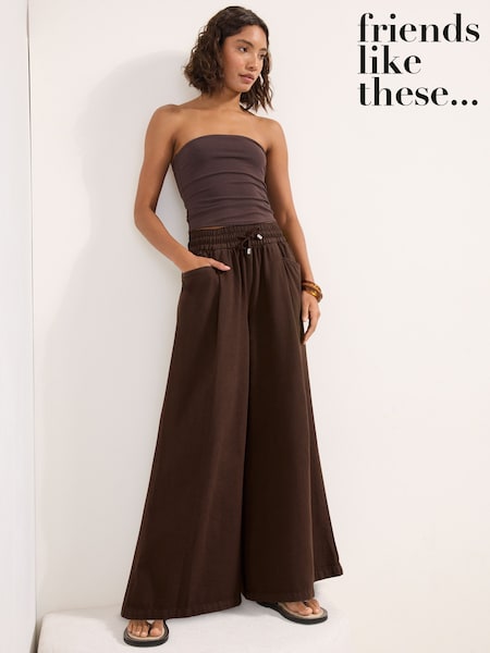 Friends Like These Chocolate Brown Shirred Tie Waist Wide Leg Trousers