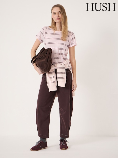 Hush Red Bryce Seam Detail Barrel Leg Trousers