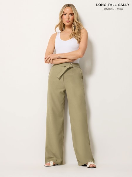 Long Tall Sally Green Tab Detail Wide Leg Trousers