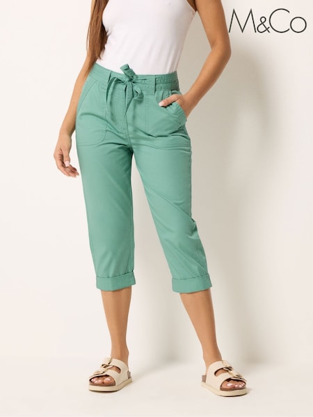M&Co Green Petite Cotton Poplin Cropped Trousers