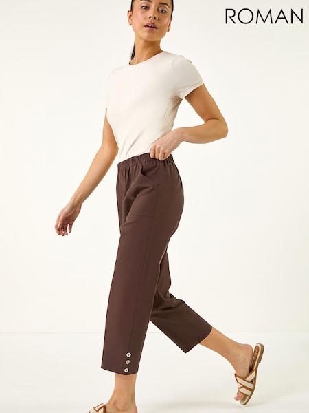 Roman Brown Chrome Cropped Stretch Capri Trousers