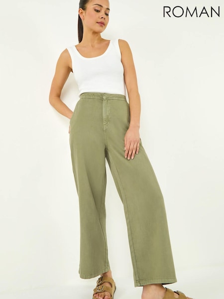Roman Green Smart Twill Wide Leg Pocket 100% Cotton Trousers