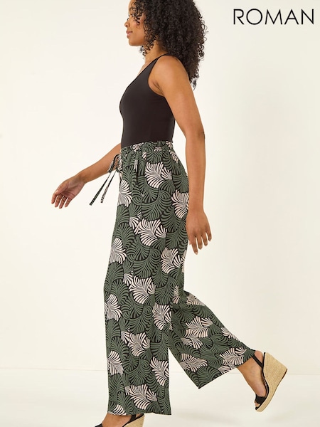 Roman Green Petite Elastic Waist Wide Leg Stretch Trousers
