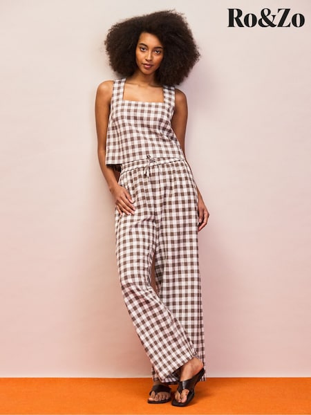 Ro&Zo Brown Gingham Linen Blend Casual Trousers