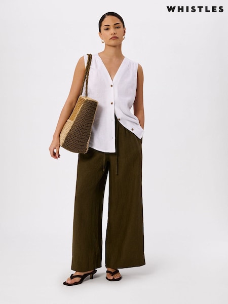 Whistles Green Elasticated Linen Crop Trousers