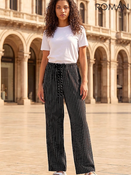 Roman Black Petite Stripe Pull On Stretch Trousers