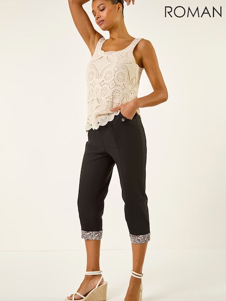 Roman Black Contrast Crop Trousers