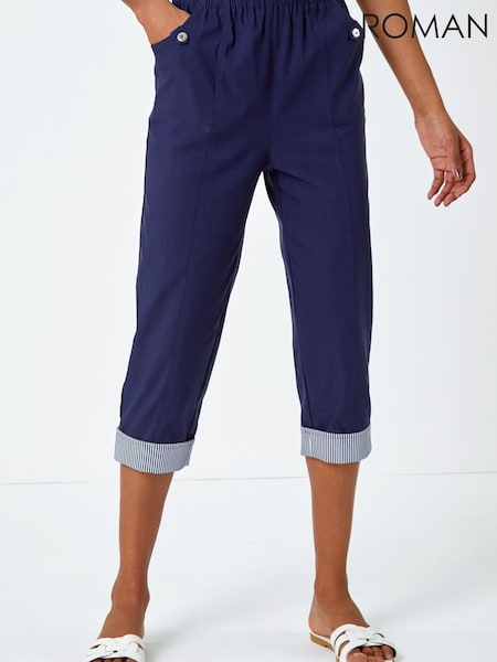 Roman Blue Contrast Detail Cropped Stretch Trousers
