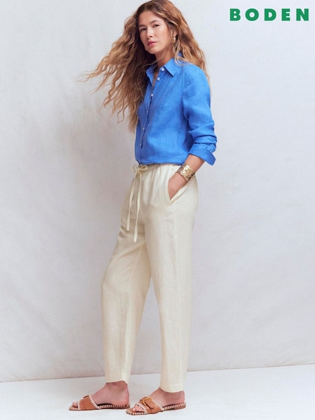 BHOEM Neutral Wide Leg 100% Linen Trousers With Tie Detail