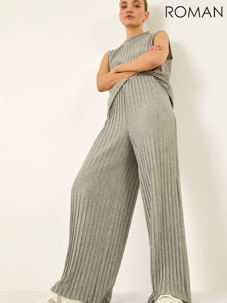 Roman Grey Pleated Wide Leg Stretch Trousers
