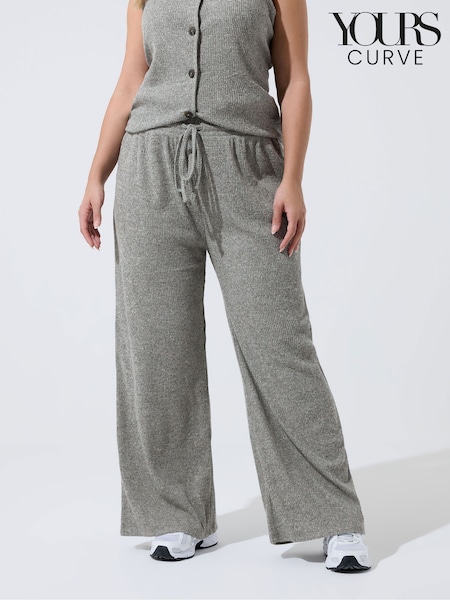 Yours Curve Grey Limimted Drawstring Wide Leg Trousers