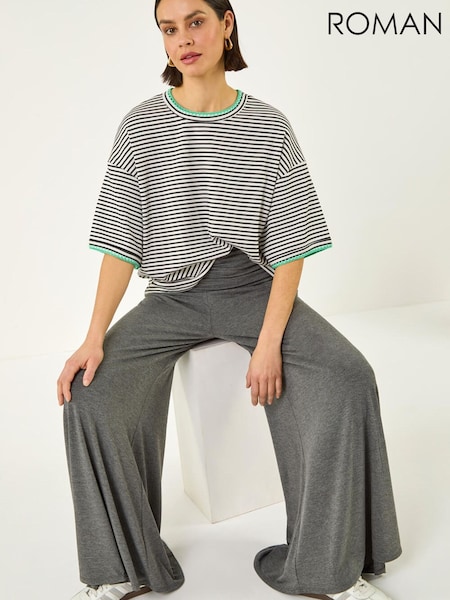 PixieGirl Grey Stripe Wide Leg Scuba Trousers