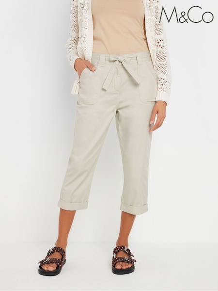M&Co Natural Cool Cotton Poplin Cropped Trousers