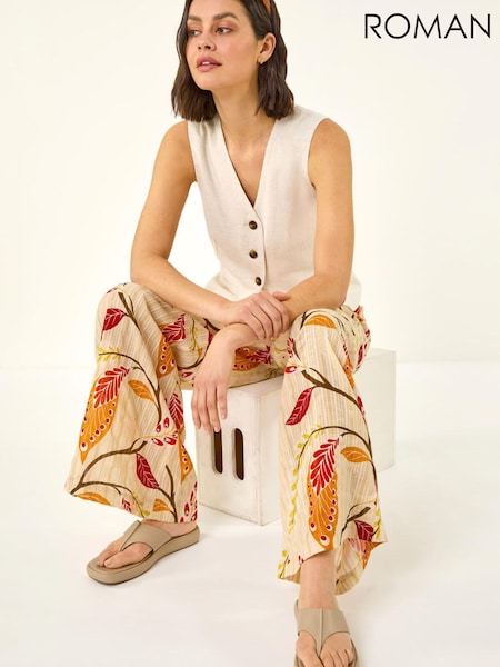Pink/Orange Stripe Smart Front Linen Blend Wide Leg Trousers