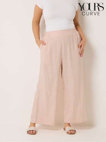 Yours Curve Orange Stripe Wide Leg Linen Trousers