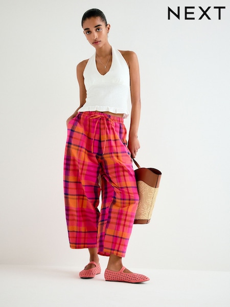 Pink/Orange Chicek Barrel Leg Trousers