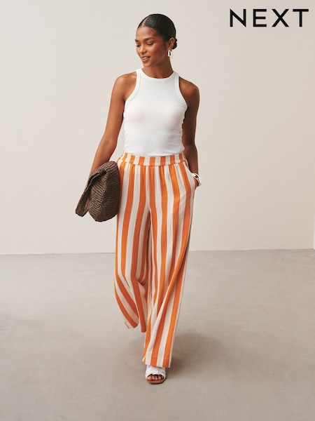 Orange Pull On Wide Leg Trousers With Linen