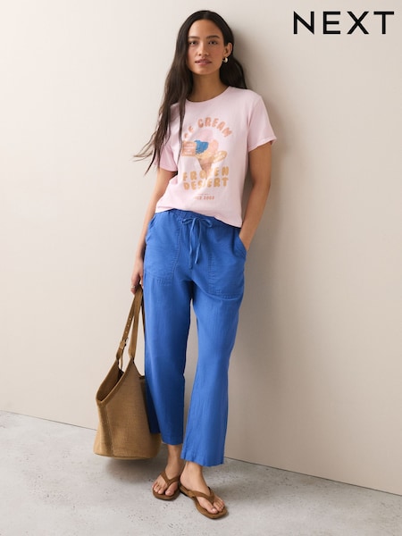 Blue Stripe Cotton Linen Blend Barrel Leg Trousers