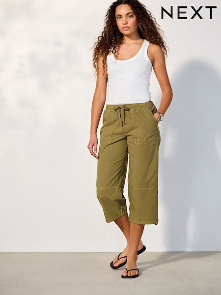 Khaki Green Cropped Utility Chino Trousers