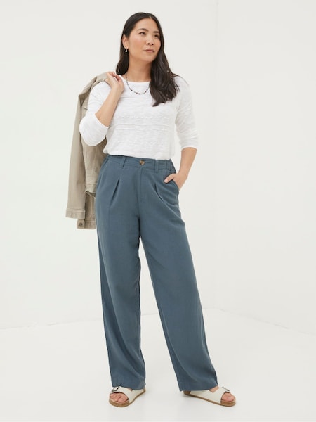 FatFace Pendeen Blue Linen Blend Trousers