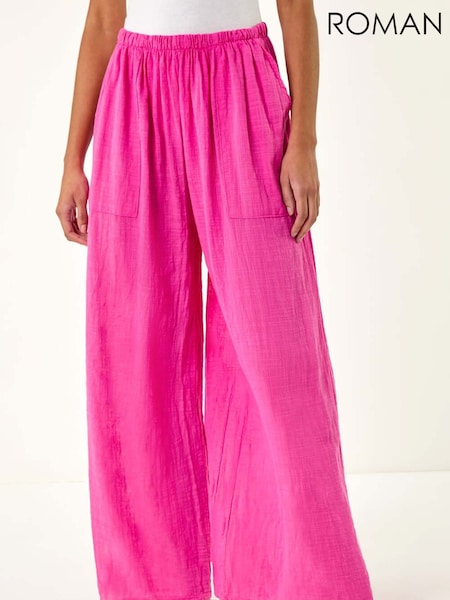 (517)Discover ultimate comfort with our women's 100% cotton trousers collection. Explore wide-leg, cropped, denim and cargo trousers designed for versatility and ease. Our 100% cotton pull-on trousers feature an elasticated waistband with an adjustable drawstring, allowing a perfect fit and luxurious feel for any occasion. Practical front scoop and side pockets add functionality, while beautiful prints like stripes, animal patterns or gingham in a variety of colours enhance your wardrobe. Ideal for all-day wear, pair these breathable cotton trousers with oversized tops or casual tees and stylish footwear for a chic, relaxed look all day long.