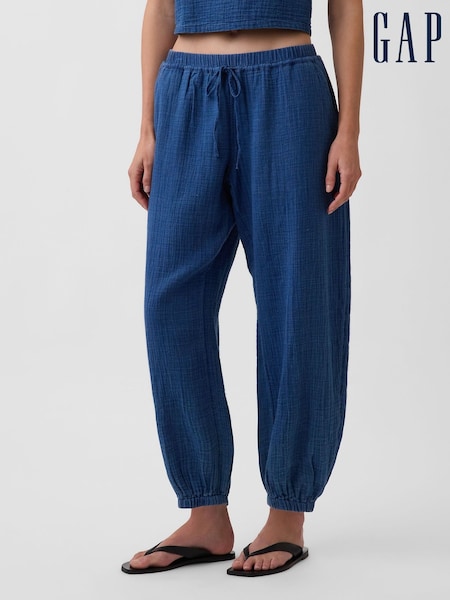 Gap Blue Mid Rise Linen-Blend Wide-Leg Trousers