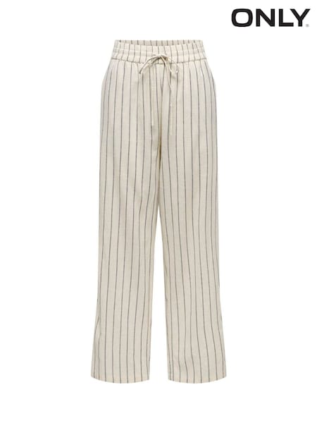 ONLY Cream Stripe Cotton Drawstring Trousers