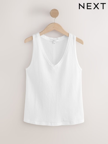 Pour Moi White Maya 100% Cotton Slub Jersey Built Up V-Neck Vest