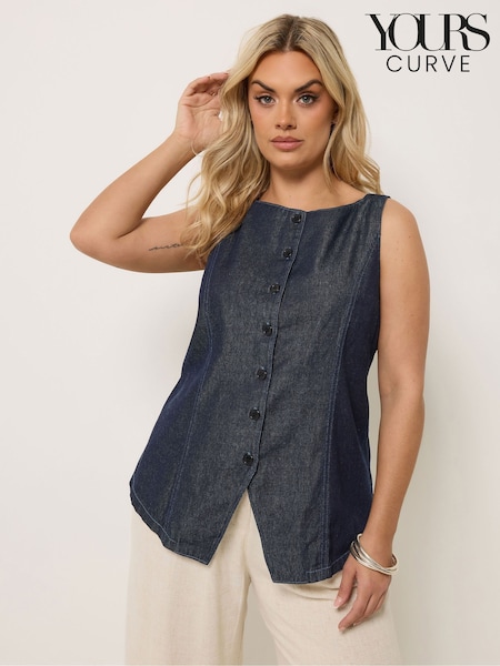 Yours Curve Blue Denim Waistcoat