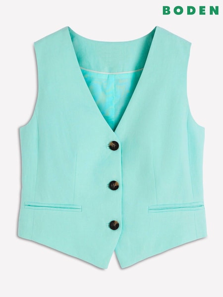 Boden Blue V-Neck Linen Waistcoat