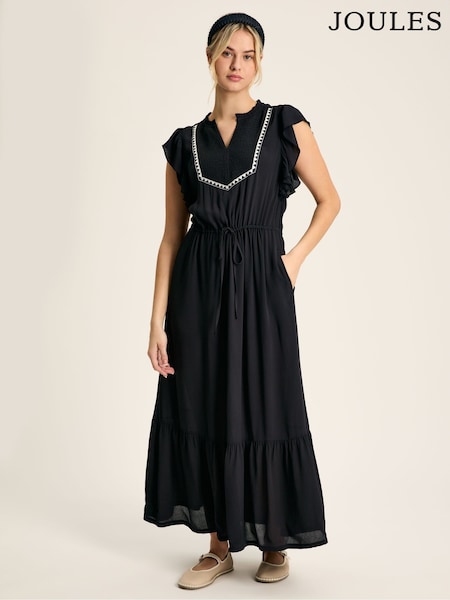 Joules Juliana 100% Cotton Black Broderie Midi Dress