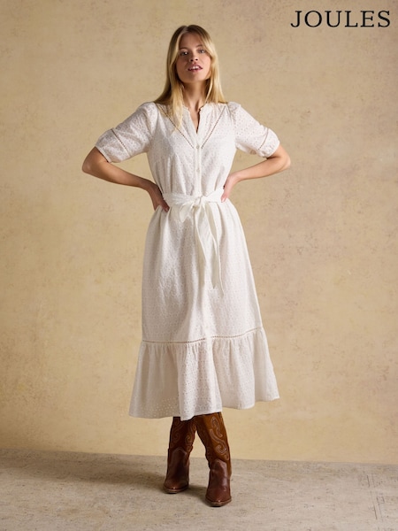 Joules Susanna Chalk White Short Sleeve Broderie Midi Dress