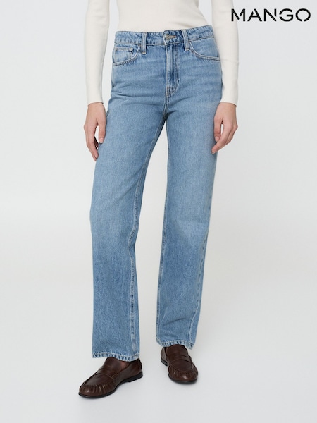 Mango Blue Fine Knit Side Slit Maxi Dress
