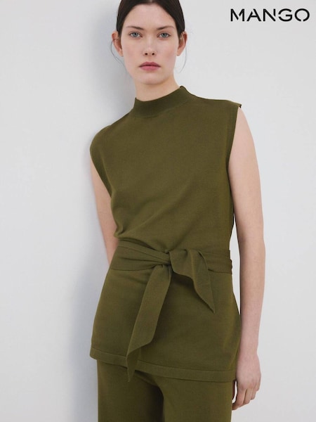 Mango Khaki Tie Waist Detail Sleeveless Top