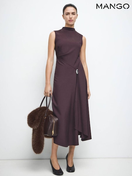 Mango Burgundy Long Dress with Draped Neck