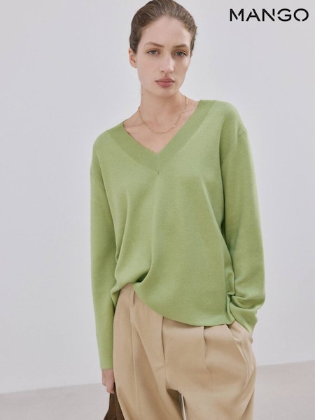 Mango Green V-Neck Long Sleeve Jumper