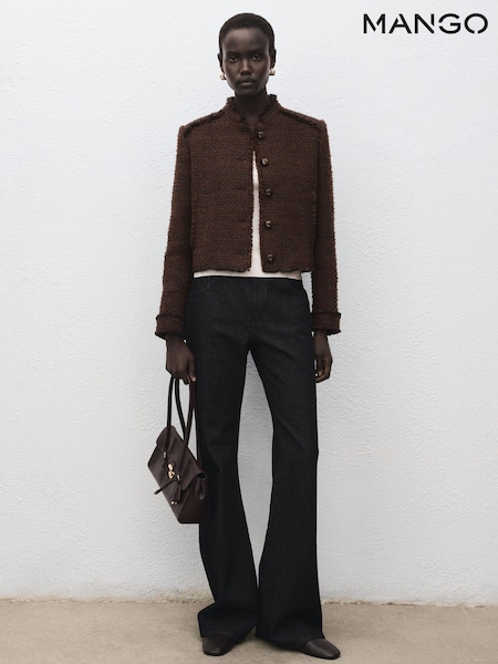 Mango Brown Bouclé Jacket With Jewel Buttons