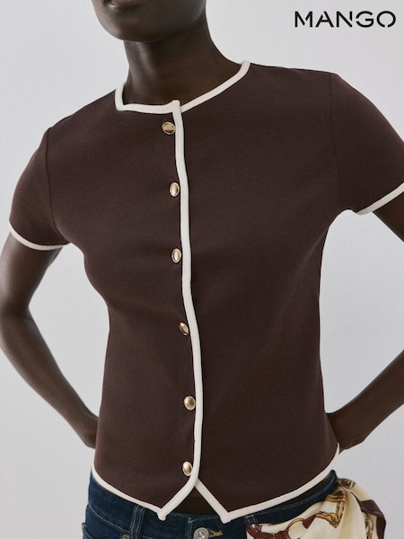 Mango Brown Short Sleeve Contrast Cardigan