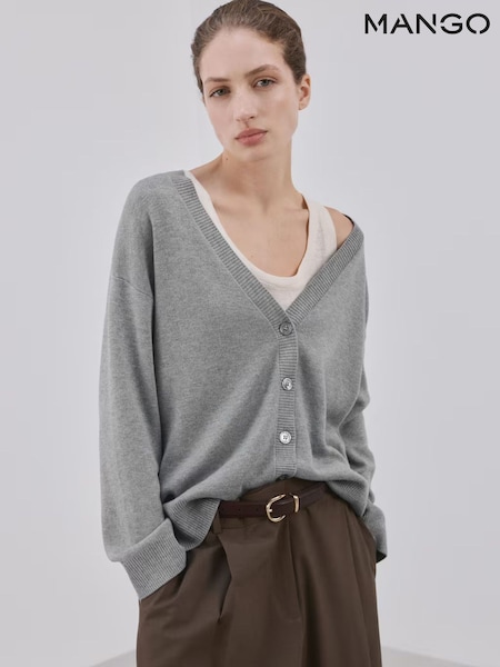 Mango Grey Long Sleeve V-Neck Cardigan