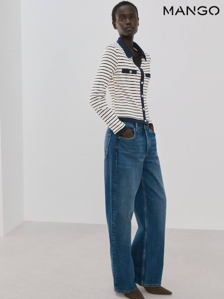 Mango Blue Long Sleeve Stripe Cardigan