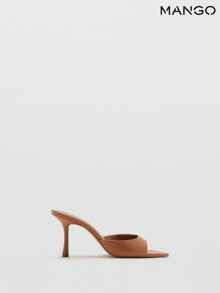 Mango Brown Point Open Toe Heel Mules