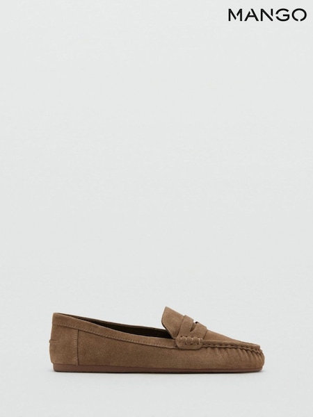 Mango Brown Suede Topstitched Loafers