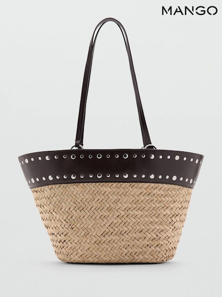 Mango Brown Straw Studded Detail Tote