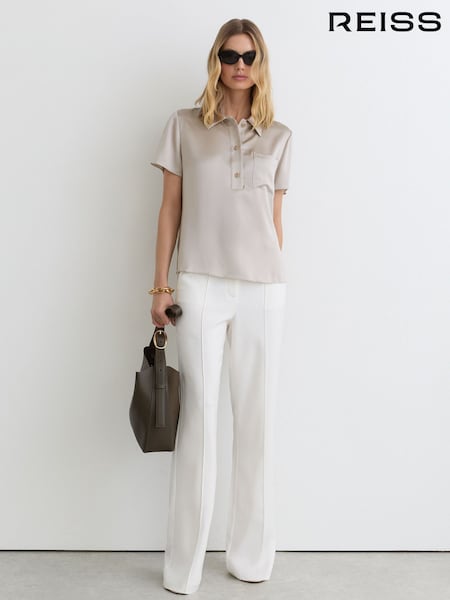 Reiss Light Grey Polly Silk Half-Button Short-Sleeve Shirt