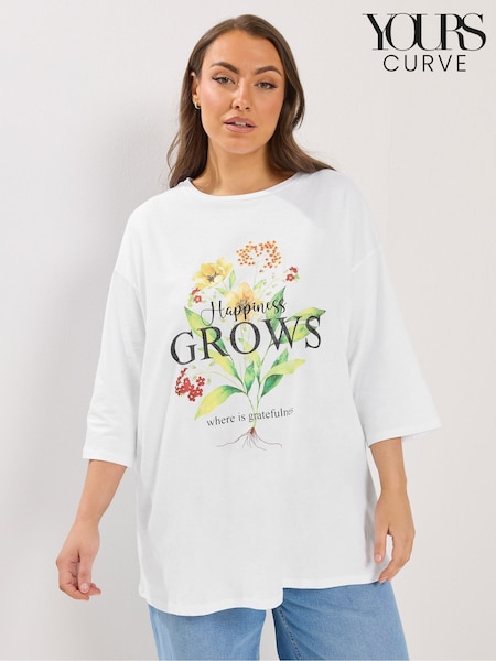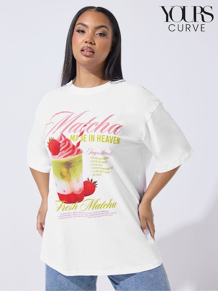 Yours Curve White Limited Matcha Made In Heaven Longline T-Shirt