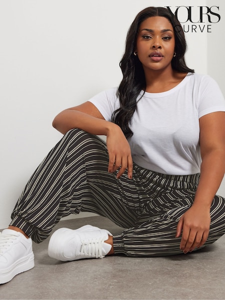 Yours Curve Black Striped Jersey Cuffed Trousers