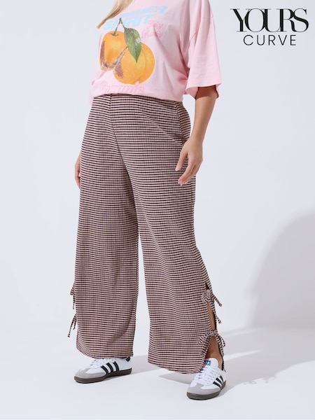 Yours Curve Brown Limited Gingham Tie Hem Trousers