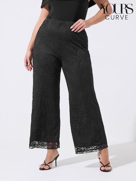 Yours Curve Black Limited Gingham Tie Hem Trousers